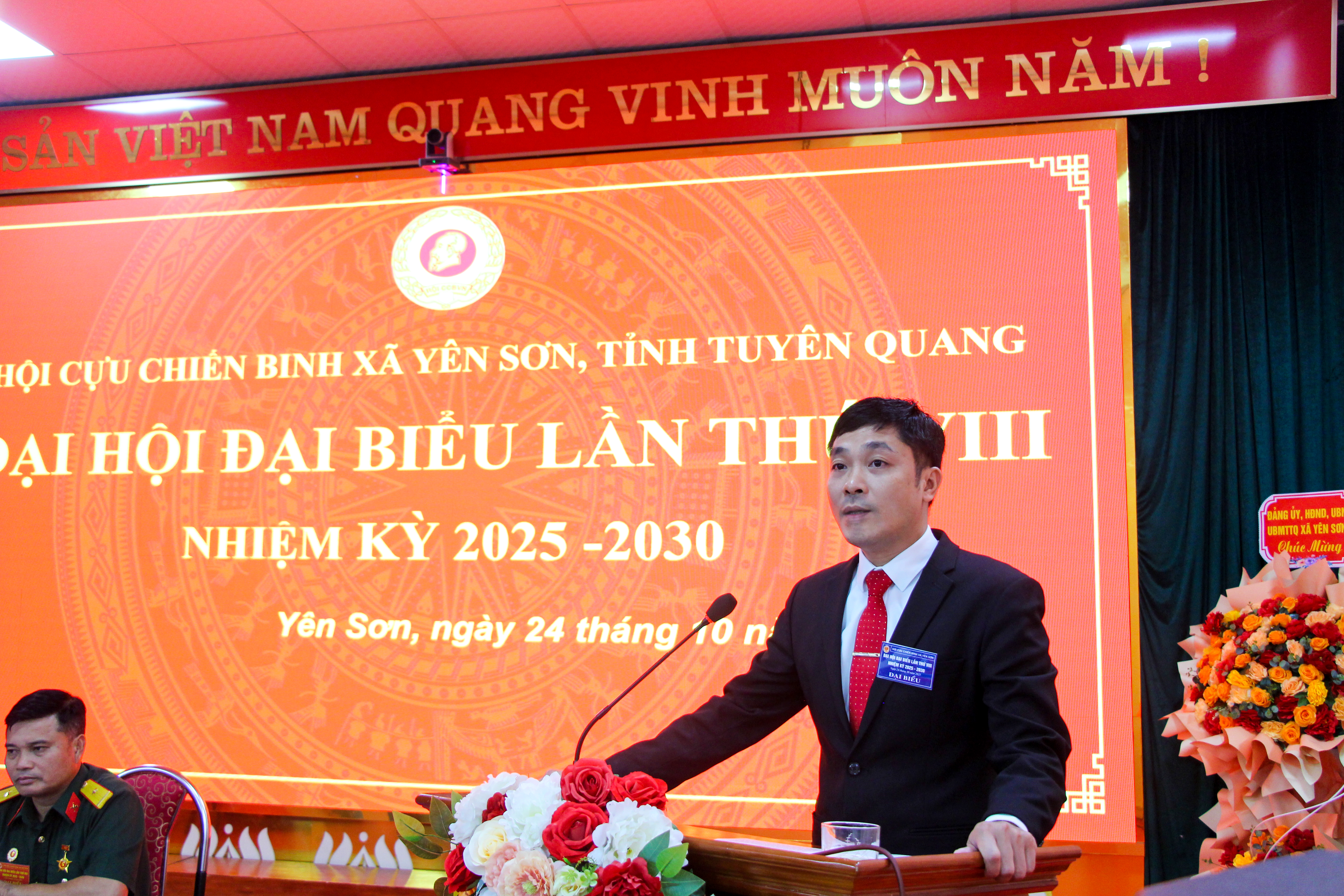 Phát biểu chỉ đạo tại Đại hội, đồng chí Đỗ Văn Tuấn, Phó Bí thư Thường trực Đảng ủy xã, Giám đốc Trung tâm chính trị Yên Sơn ghi nhận, đánh giá cao và biểu dương những kết quả mà Hội Cựu chiến binh xã Yên Sơn đã đạt được trong nhiệm kỳ qua. Để Hội CCB xã tiếp tục phát huy truyền thống cách mạng, xứng đáng là lực lượng chính trị, xã hội tin cậy của Đảng, là chỗ dựa vững chắc của chính quyền, nhân dân, đồng chí đề nghị Hội CCB xã tiếp tục đẩy mạnh công tác giáo dục chính trị, tư tưởng, tăng cường giáo dục truyền thống cách mạng, lòng yêu nước, tinh thần tự hào dân tộc, ý chí tự lực, tự cường, giữ vững và phát huy phẩm chất danh hiệu cao quý “Bộ đội Cụ Hồ” trong thời kỳ mới, nhất là phối hợp giáo dục truyền thống cho thế hệ trẻ. Động viên cựu chiến binh phát huy ý chí tự lực, tự cường, tích cực tham gia các hoạt động tình nghĩa, đoàn kết giúp nhau phát triển kinh tế, làm giàu chính đáng, đẩy mạnh phong trào cựu chiến binh giúp nhau giảm nghèo, làm kinh tế giỏi, phong trào thi đua cựu chiến binh gương mẫu gắn với học tập và làm theo tư tưởng, đạo đức, phong cách Hồ Chí Minh và các phong trào thi đua yêu nước ở địa phương. Quan tâm xây dựng tổ chức hội trong sạch vững mạnh, nâng cao chất lượng sinh hoạt chi hội, làm tốt công tác phát triển hội viên mới, chăm lo đời sống vật chất, tinh thần cho hội viên, đảm bảo mọi CCB đều được quan tâm, chia sẻ gắn bó như trong một đại gia đình.