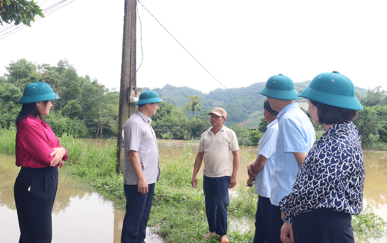 Đồng chí Bí thư Đảng ủy và đoàn công tác đã đến kiểm tra các điểm ngập úng tại thôn Hồng Thái
