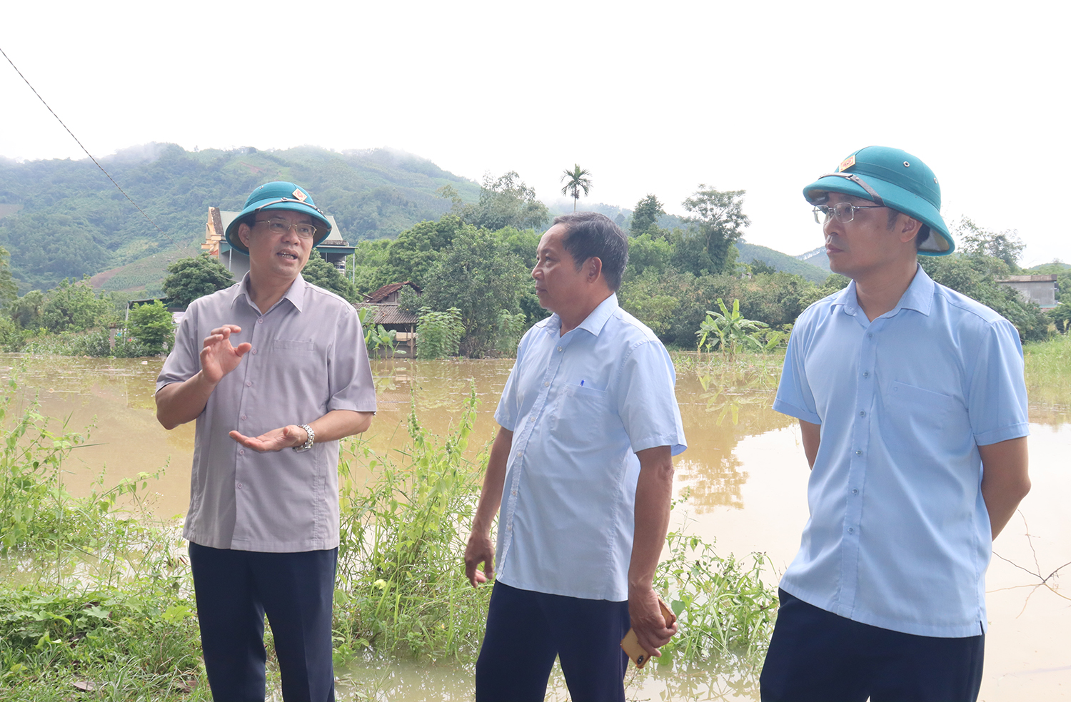 Đồng chí Bí thư Đảng ủy và đoàn công tác đã đến kiểm tra các điểm ngập úng tại thôn Bình Ca 1