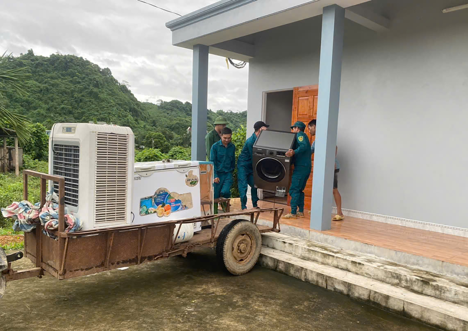 Lực lượng Dân quân giúp đỡ người dân di dời tài sản
